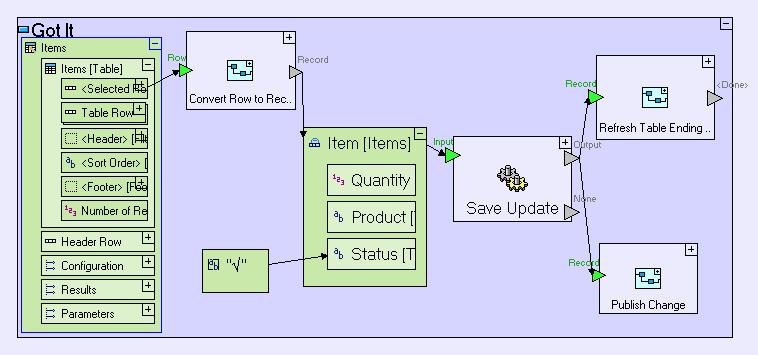 Note that 'Got It' works both ways – either selecting a row and then pressing the 'Got It' that appears above the table, or pressing a 'Got It' in one of the rows. This is possible because of the way 'Got It' is modeled (referring to the selected table row).