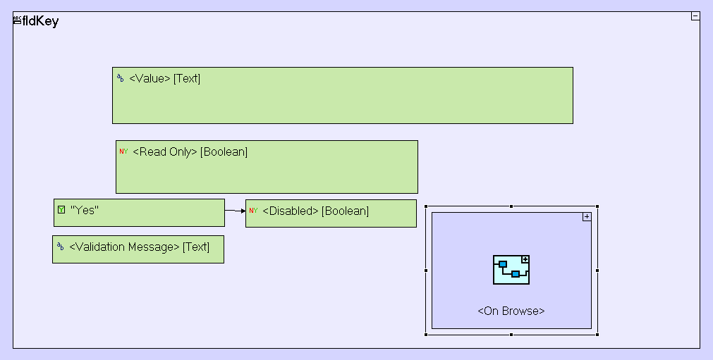 I've a validation test in a text-field with a <On Browse> + <Diasabled>
