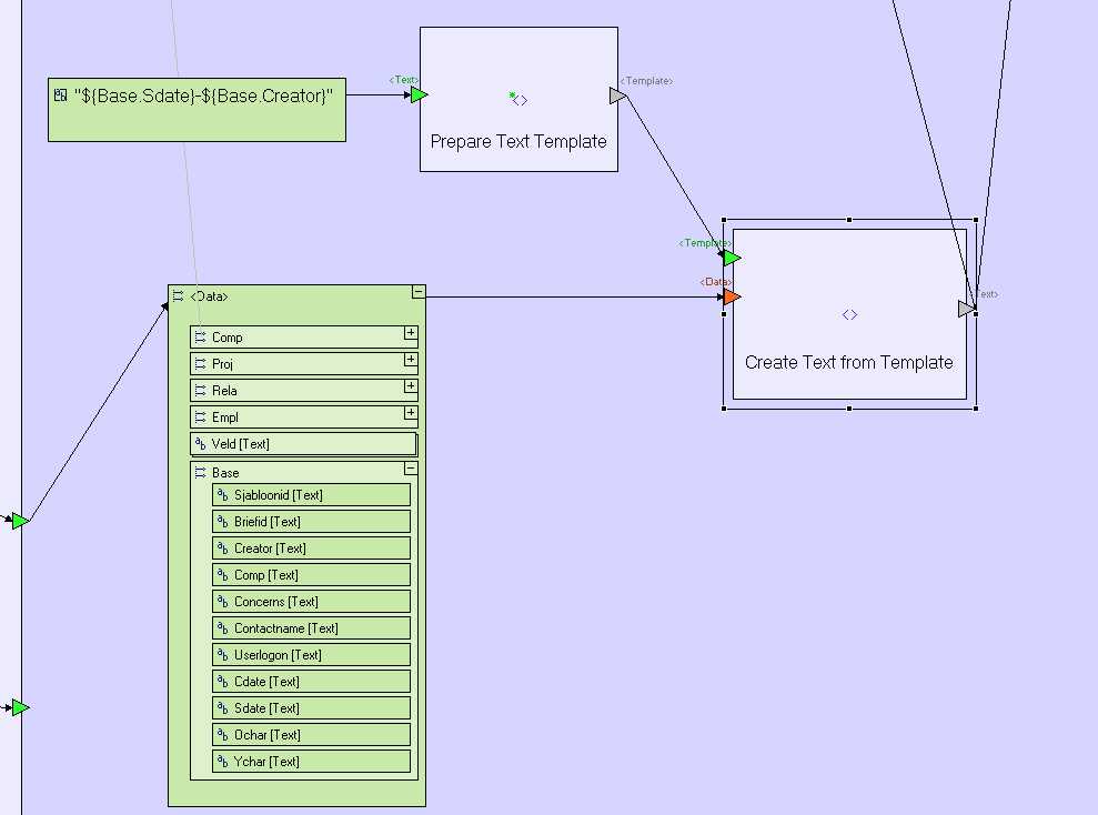 I.e. the variabele ${Base.Comp} works with "Create OpenDocument from Template" but not with "Create Text from Template"