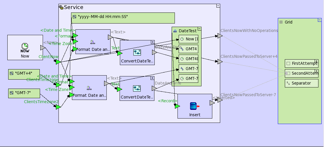 Again we use Format Date and Time model, but we need to provide server's GMT.