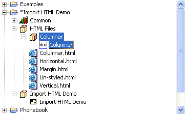 In order to simplify this demo, we have prepared an archive file (html-templates.zip) which contains HTML and CSS files downloaded from The Man in Blue site (using the browser's File -> Save As... command), and arranged in a folder hierarchy which allows for easy import into a Tersus application, as follows: