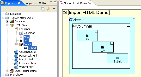 We can now demonstrate Import HTML Template, which reads an HTML file and creates corresponding Tersus models. It will create a set of display models to support within Tersus the display and control of the HTML elements contained in the imported template.