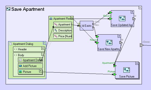The Save button within Apartment Dialog/Header was initially implemented (in stage 3) to save in the database the details and pictures of a new apartment. Now we have an apartment already existing in the database, so some changes should be introduced to the save process.