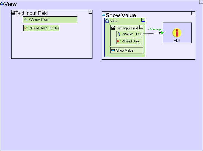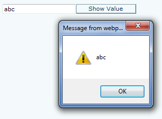 Results in this display (when the user enters a value to the Text Input Field and presses the Show Value button):