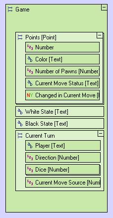 The "Game Model" is a data structure Game representing the game's status. While it is closely related to its representation on the screen, it is GUI independent (for the GUI implementation, see the Game View section below).