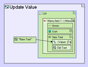 Note that the 'New Text' flows into the <Value> text element, not to the 'Old Text' constant.