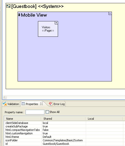 To configure the application to use a client-side database, the clientSideDatabase property of the root system should be set to "local". Since our application was created from the Native Mobile Application template, this should already be the default, but we can verify it: