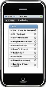Initially, the application scans the root music folder and displays its contents (folders and/or music files). The user can traverse the music folders until the desired folder of music is found. Then the application displays the list of songs. When the user clicks a song, it is played. The user can then pause and resume play, or cancel and select another song.