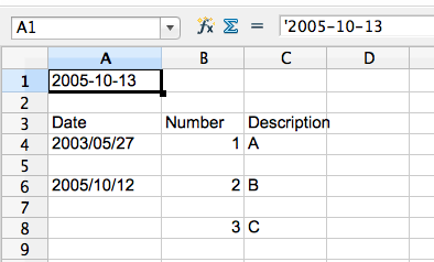 I found it's because of the test file, Test1/Excel File.xls. One issue is the un-aligned row, and the other is the single quote in front of the date fields.
