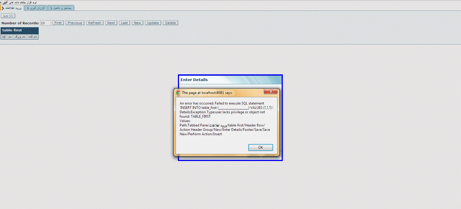 when i use table wizard and add field in unicode8 in "persian-farsi" language and then insert data its return error to me