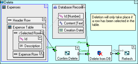 In this example, pressing the delete button brings up a confirmation dialog. If the user confirms, the record is deleted from the database.