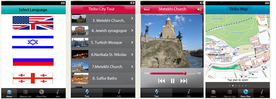 Hi David thank you very much for your answer and sending pictures and structure how I seems to be look like my application -- Loading Screen -- Home Screen -- View list of Languages -- Select Language -- View Playback Screen -- View Images along with audio playing in the background -- View Audio progress bar with other options -- View Map Screen -- View Tour Points (POIs) on the Map Screen -- Option to select the point and Play them I am very interesting to do that application and please help me how to do Thanks in advance and looking forward for your responseTbilis Tour.jpg Best Regards Zaza