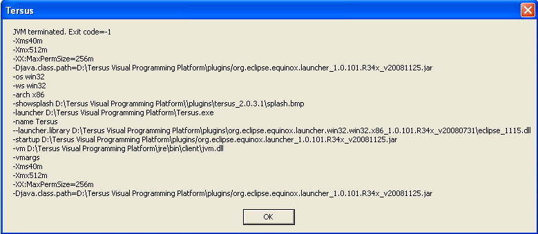 I downloaded and installed Tersus but when launching it, I keep getting the attached error.